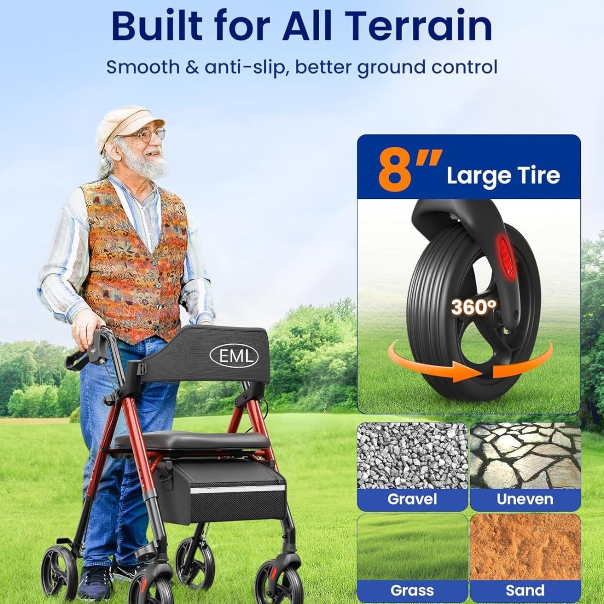 Your Journey to Freedom Starts Here. The EML Ultimate Comfort Rollator is engineered to elevate your experience of independence. Designed for effortless mobility and unparalleled comfort, it’s the perfect companion for exploring your world with confidence and ease.